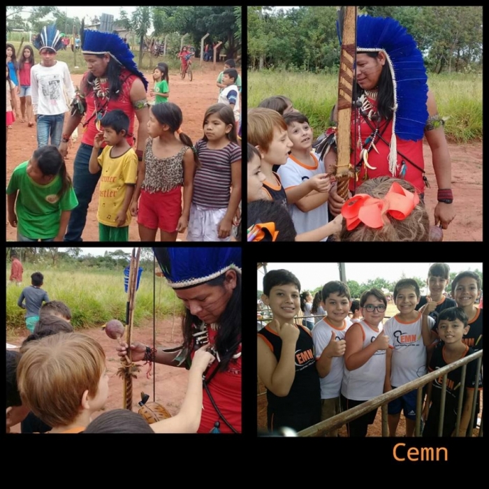 Alunos do 2° ao 5°ano do Ensino Fundamental, acompanhados das professoras (Carla, Cristiana, Daniela e Juliane) da coordenadora Adriana e dos Diretores Ana Carolina e Rodrigo, estiveram visitando a Aldeia Porto Lindo, no dia 20 de abril, recepcionados pelo Cacique Roberto Carlos e outros Índios moradores da aldeia. O objetivo maior da visita, foi possibilitar aos alunos, contato com uma realidade e cultura diferente e poder refletir sobre isso. Ontem e hoje, a Aldeia estava Comemorando o dia do Índio, e várias atividades foram realizadas no local. Nossos alunos puderam acompanhar algumas delas, como: campeonato de futebol, danças e campeonato de arco e flecha. Também fizeram algumas perguntas ao Cacique e ficaram bastante curiosos com a vestimenta, pintura no corpo e o modo de vida dos povos indígenas. Nem todas as pessoas tem acesso ou oportunidade de visitar uma aldeia. Consideramos que foi um momento de muita valia para todos nós, poder participar dessa visita. Fomos muito bem recebidos por todos. Contatos como esses, farão nossos alunos refletirem sobre as transformações que ocorrem com o tempo. "Os índios não podem ser vistos como algo folclórico ou peça de museu. São povos que têm sua cultura e ela é dinâmica, tal como a nossa". |