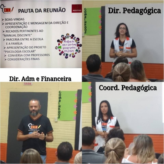 A Coordenadora Adriana após dar boas vindas, apresentou as regras comuns a todos, sobretudo as retratadas pelo regimento da própria escola e deixou também sua mensagem: "Uma dos maiores anseios da nossa Instituição Educacional é a contribuição para um mundo melhor. Assim, adotamos como missão da escola a formação de cidadãos conscientes, comprometidos e que atuem de maneira responsável na sociedade. Essa é uma construção diária realizada entre pais, alunos e escola! Desejamos à nossa comunidade escolar o sucesso almejado."