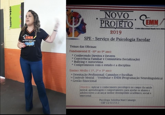 Na reunião para os pais do Fundametal II e Ensino Médio, foi apresentado o novo projeto para 2019 - Serviço de Psicologia Escolar, minipalestra ministrada pela Pscicologa Solidéia.