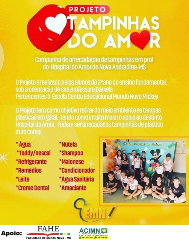 Campanha de arrecadação de tampinhas em prol do Hospital do Amor de Nova Andradina-MS