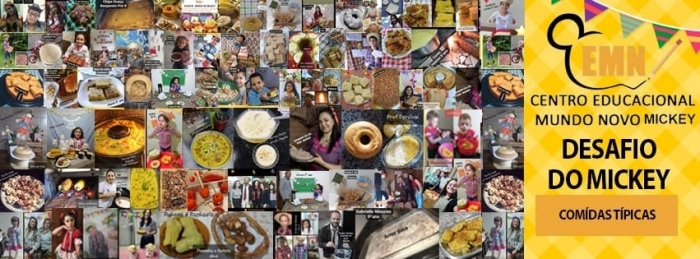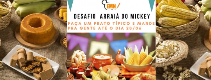 O Centro Educacional Mundo Novo Mickey desafia a nossa comunidade escolar (Professores, funcionários, famílias e alunos) a fazer um prato típico servido nas festas caipiras, juninas e arraiás e nos enviar até o dia 28/06(domingo)