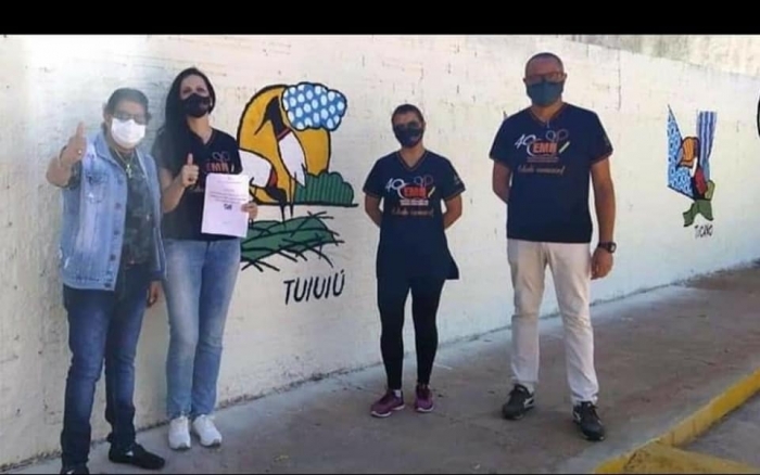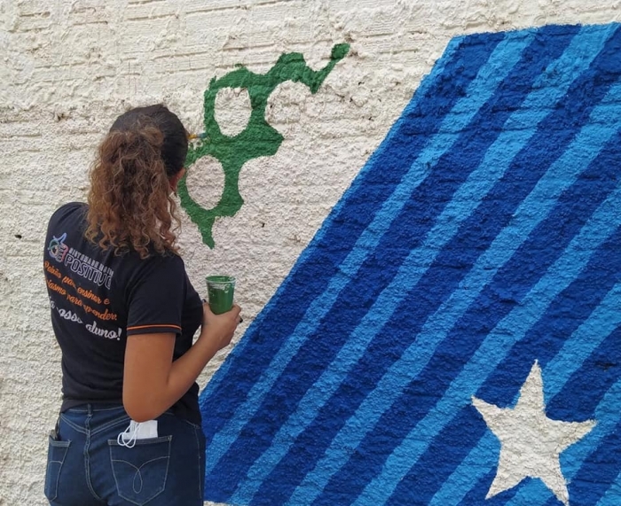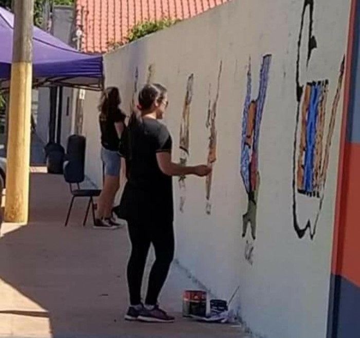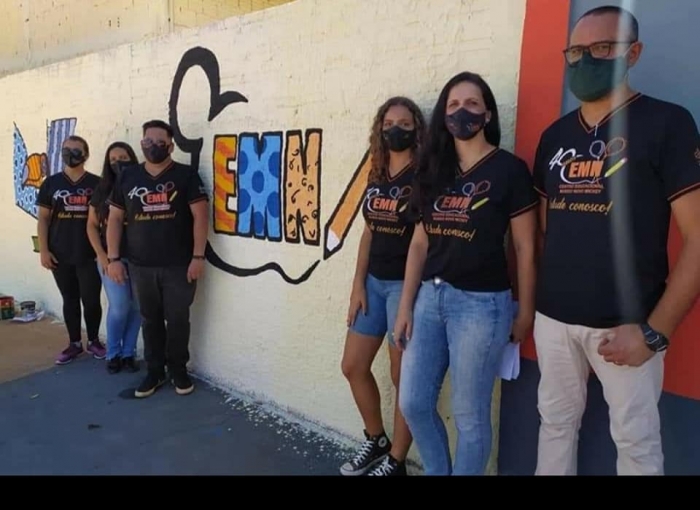 Muro do Cemn Mickey, recebe últimos detalhes do projeto cultural idealizado pelos gestores da escola que conta com a valiosa participação de uma equipe multidisciplinar. Os gestores, o professor de arte André Teixeira de Freitas Fagundes, responsável pelo Design das obras, a professora Geslayne S. Silva ( Prof. de música) e a estagiária do curso de Pedagogia, Vitória Galli, responsáveis pelas pinturas.