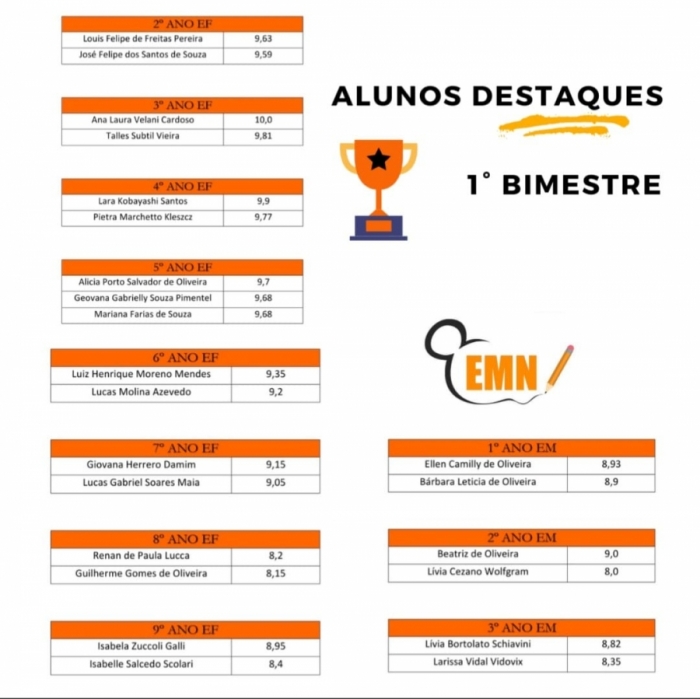 Projeto Alunos Destaque 1º e 2º Bimestres