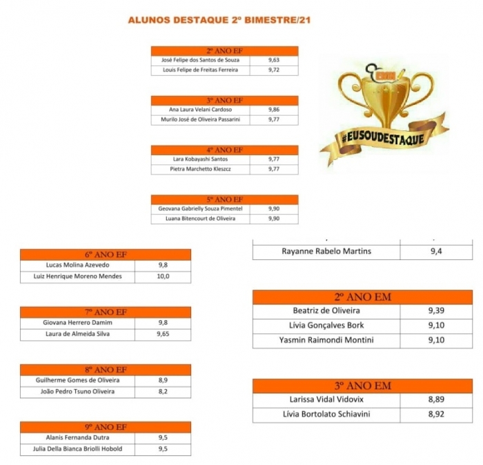 • 25/05/2021 - Projeto Alunos Destaque 1º e 2º Bimestres