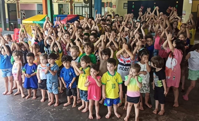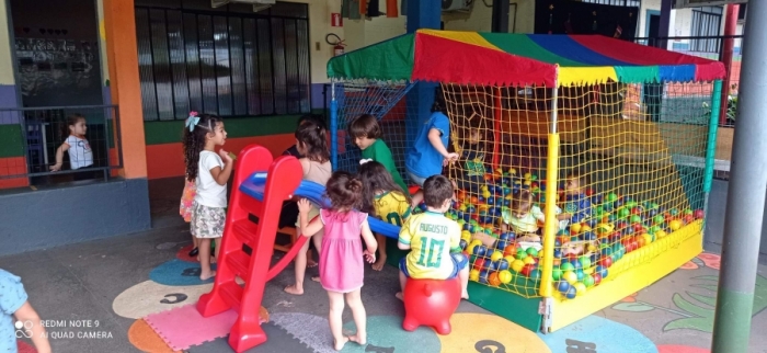Último dia de Aula, teve jogos, diversão, músicas, lanche compartilhado, espírito natalino, pula-pula, piscina de bolinhas e gostinho de férias.
